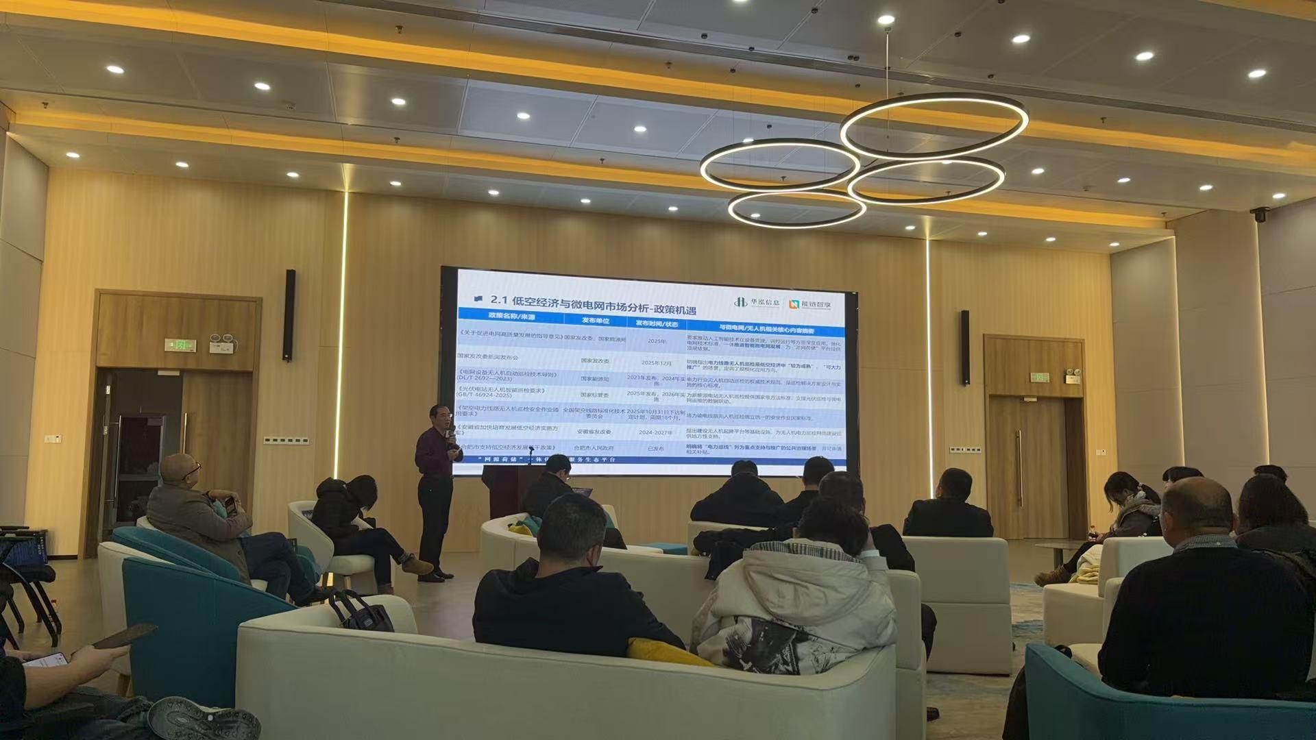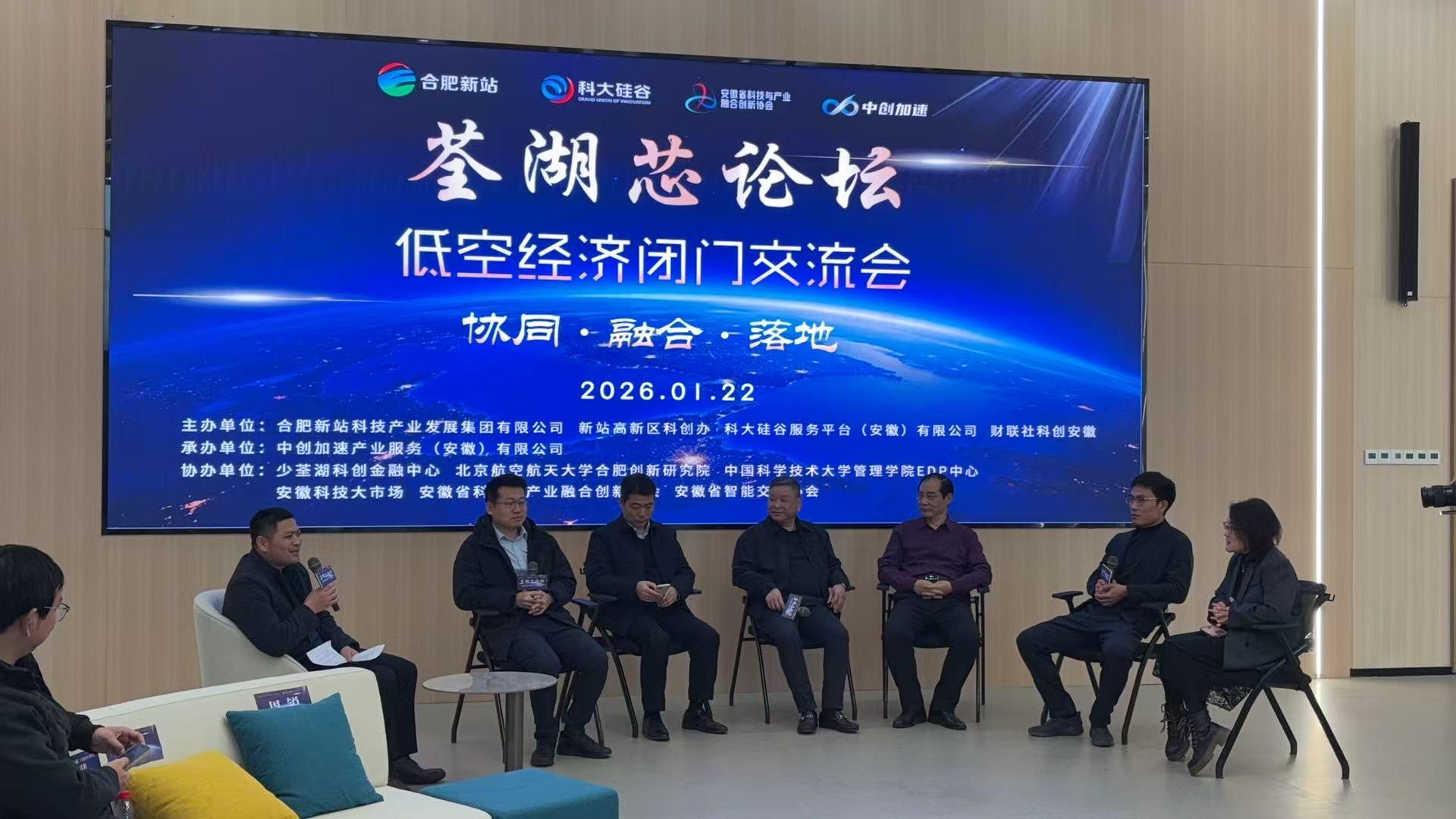 2026年1月22日,由合肥新站科技产业发展集团主办的“荃湖芯论坛——低空经济闭门交流会”在合肥新站高新区少荃湖科创中心成功举办。活动汇聚了来自政府、高校、科研机构及产业链企业的六十余位代表,共同打造了一个聚焦前沿、推动实效的高层次产业对话平台。新站高新区科创办主任韩旭、合肥新站科技产业发展集团有限公司董事、副总经理刘云静出席并发表致辞,安徽斯帕斯科技有限公司联合创始人、总经理夏鹏,北京北纬通信科技股份有限公司营销总经理房亮,安徽能链智享科技集团有限公司&安徽华泓信息技术有限公司董事长邱大礼应邀出席。邱大礼董事长作《“网源荷储”一体化低空共享智能巡视的应用实践》主题路演和圆桌对话交流。